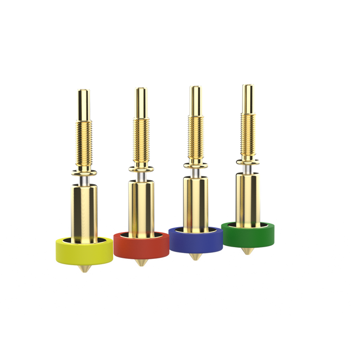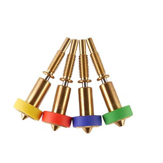 Ein wachsendes Sortiment. Wir sind bereit, RapidChange-Düsen in jeder Größe herzustellen. Zum Start bieten wir Messingdüsen in den Größen 0.25mm, 0.4mm, 0.6mm und 0.8mm an, mit vielen weiteren kompatiblen Düsen, die später folgen werden. Verschleißfeste und hochdurchflussfähige Varianten sind bereits auf unserem Fahrplan und werden im Laufe der Zeit folgen.