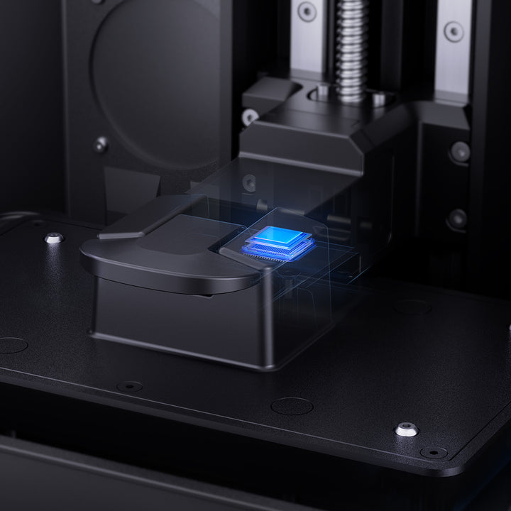 - Benutzerfreundliches Design: Quick-Release-Build-Plate, Harzwanne mit Dual-Ausgüssen & Flip-Up-Cover.