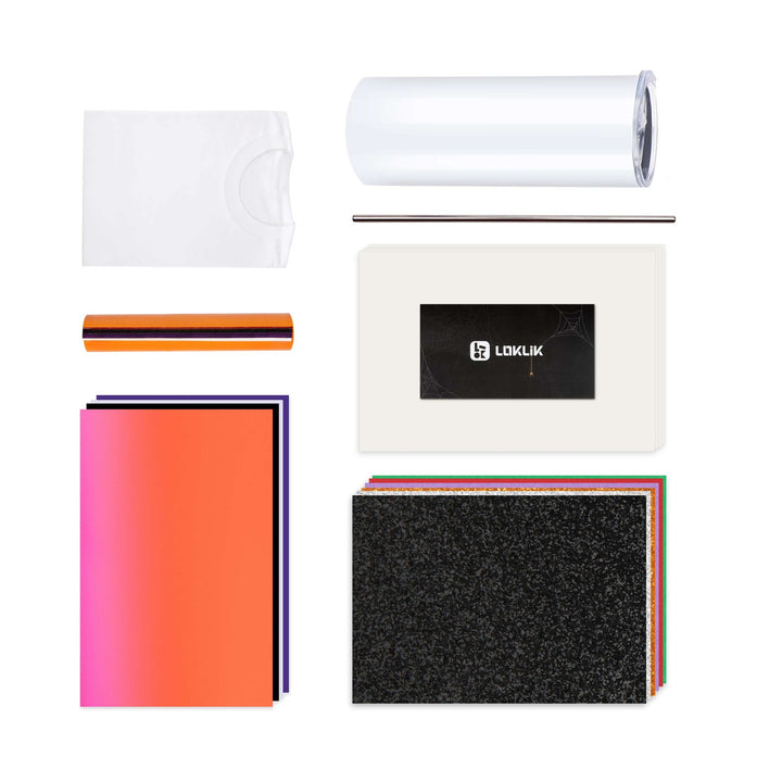 Mit dem enthaltenen Heat Transfer Vinyl und permanentem Klebevinyl in Halloween-Farben wie glitzerndem Schwarz, Rot und holographischem Orange haben Sie zahlreiche Möglichkeiten, Ihre Dekorationen und Bekleidung zu personalisieren. Gestalten Sie individuelle T-Shirts, gruselige Tassen oder sogar leuchtende Trick-or-Treat-Taschen!