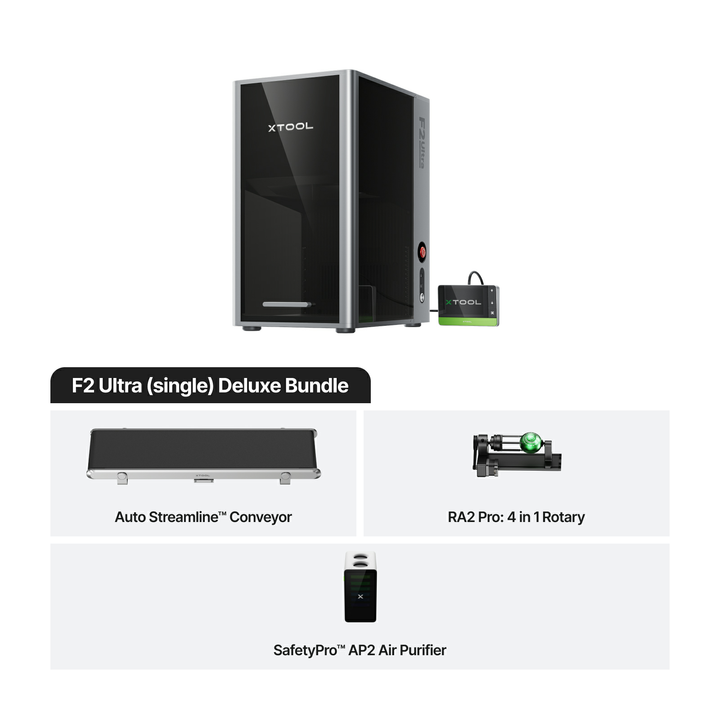 Der xTool F2 Ultra (Single) ist ein leistungsstarker Lasergravierer mit einem 60W MOPA-Laser, der für hochpräzises Gravieren und Markieren auf Metallen und ausgewählten harten Oberflächen entwickelt wurde. Mit lebendigen Farbgravuren, 3D-Prägungen und ultraschnellen Geschwindigkeiten bietet er industrielle Qualität für Kreative, die Präzision und Effizienz verlangen.